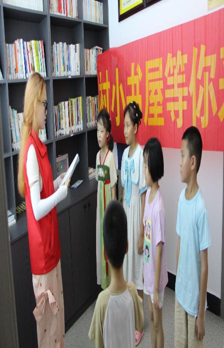 紧邻小广场的小书屋里,大学生实践团正在为孩子们举办一场阅读活动,他们通过故事分享、绘本赠送、亲子阅读、制作书签等方式,为孩子们送上了一道阅读文化大餐。小书屋成为大家学习读书之所、思想碰撞之所、儿童启蒙之所、家风传承之所,小小书屋,汇聚大大能量。